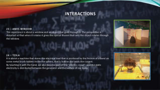 Through the interaction with elements of the exhibition, visitors can know, experience, feel, question and explain.