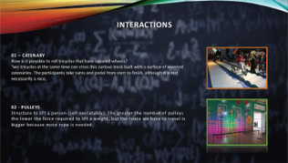 Lifting a great weight with the help of a giant lever, experiencing the centrifugal force when turning at great speed, becoming a giant or a dwarf and pedaling on a tricycle of square wheels! are some of the activities that this exhibition offers, allowing visitors to get hold of physical phenomena and link them to their daily lives.